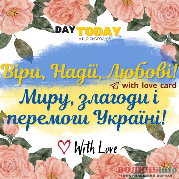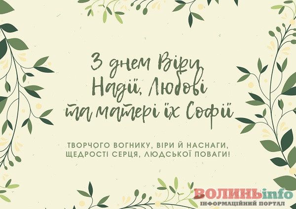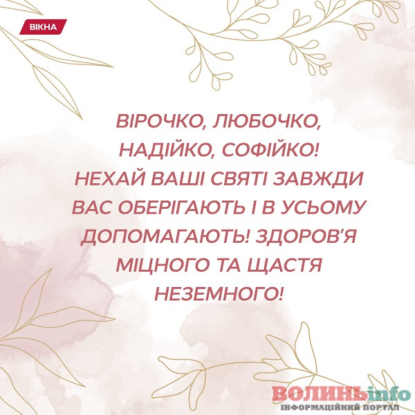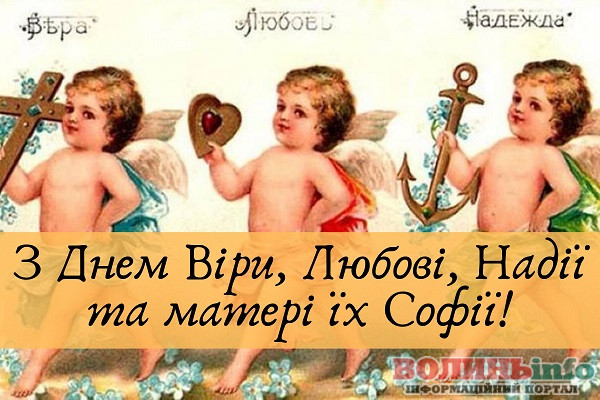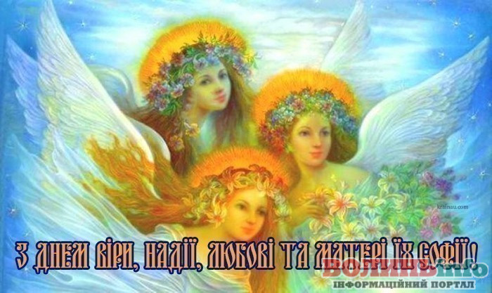 Вітаємо з днем Віри, Надії, Любові та матері їх Софії! Бажаємо, щоб у вашому житті завжди було місце вірі й надії, щоб серця переповнялися любов’ю і ніжністю. Нехай щирість, добро і людське тепло завжди буде в вашому оточенні. Нехай буде більше радості та безпосередності, посмішок і обіймів! Щастя вам!