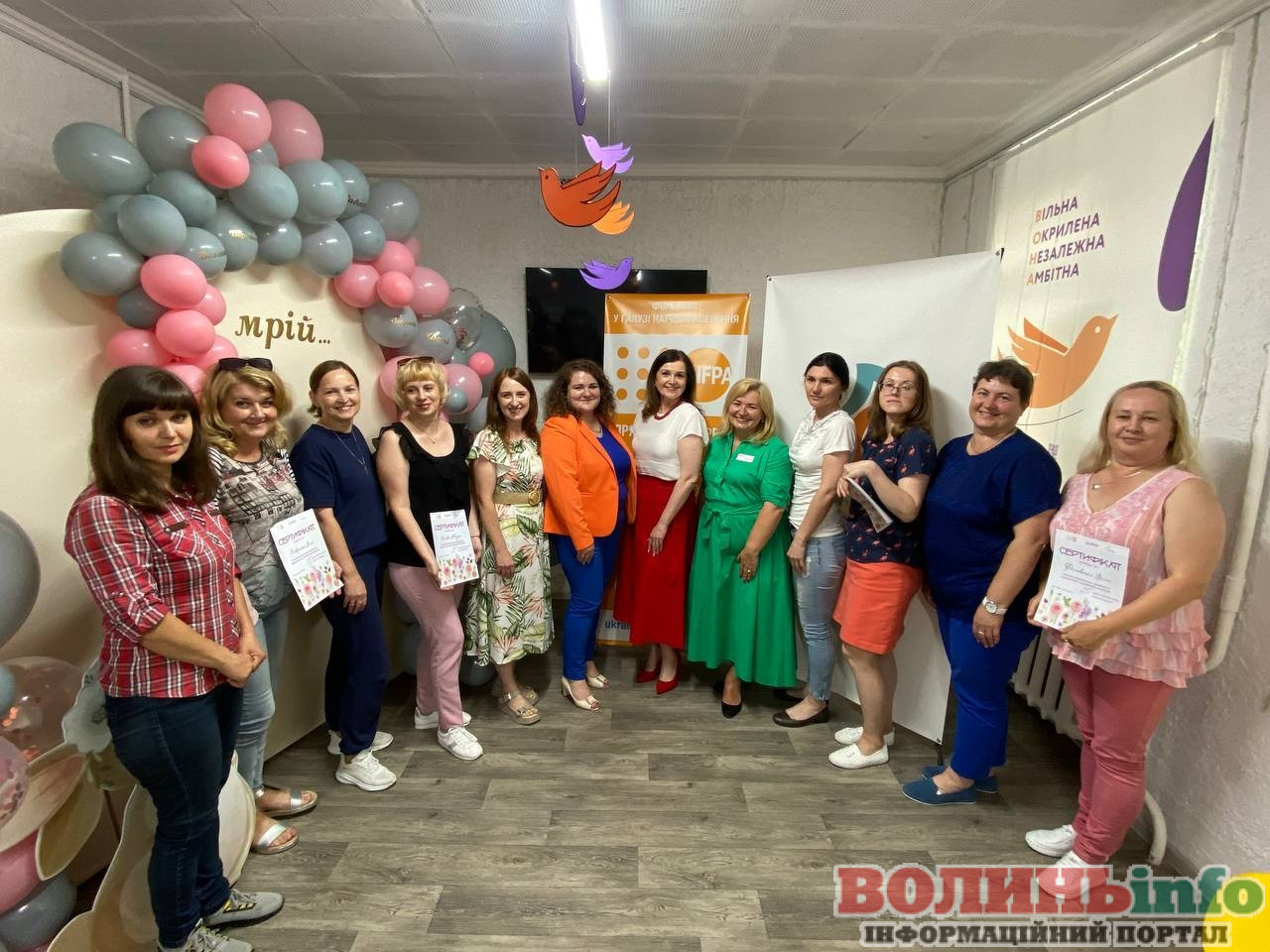 На вручення сертифікатів про проходження курсів завітала заступниця Луцького міського голови Ірина Чебелюк. Вона відзначила талант жінок, що створювали квіткові композиції та фотозони впродовж навчання.