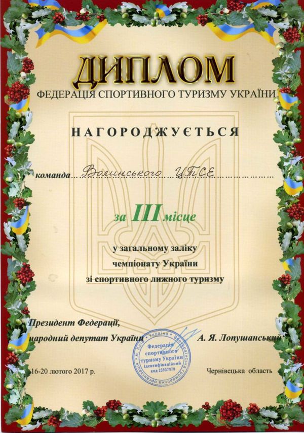 З 16 по 19 лютого 2017 року в Чернівецькій області відбувся чемпіонат України з лижного туризму, організований Міністерством молоді та спорту України та Федерацією спортивного туризму України.