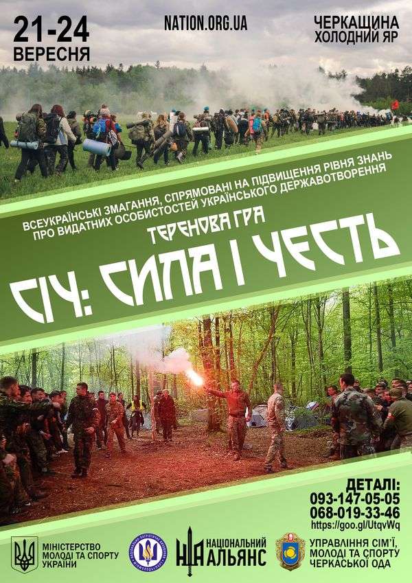 21-24 вересня 2017 року вже вдруге на Черкащині в урочищі Холодний Яр відбудуться всеукраїнські змагання, спрямовані на підвищення рівня знань про видатних особистостей українського державотворення «СІЧ «Сила і честь».