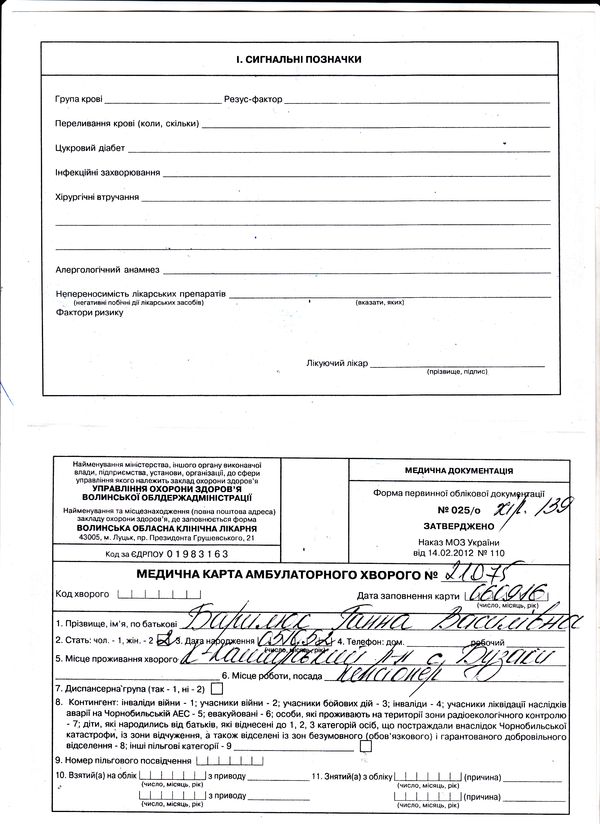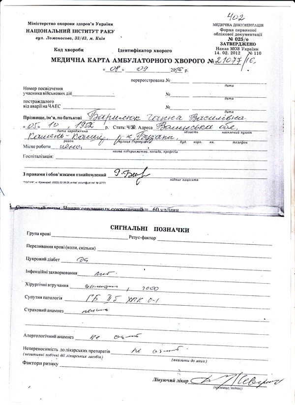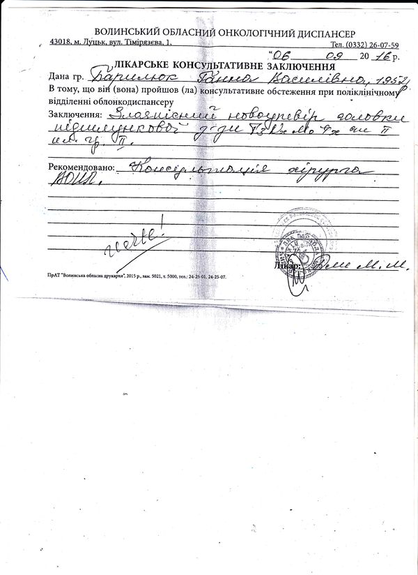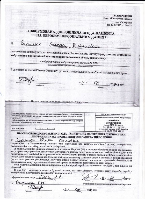 Хворобу у волинянки Ганни Барилюк виявили близько тижня тому. Жінка розповідає, що живіт у неї болів і раніше, але за допомогою до лікарів не зверталась, оскільки болі не були дуже сильними. Коли ж біль став нестерпним, вирішила обстежитись. З Камінь-Каширської лікарні її направили у Волинський обласний онкологічний диспансер, а звідти — у Київ, в Національний інститут раку.