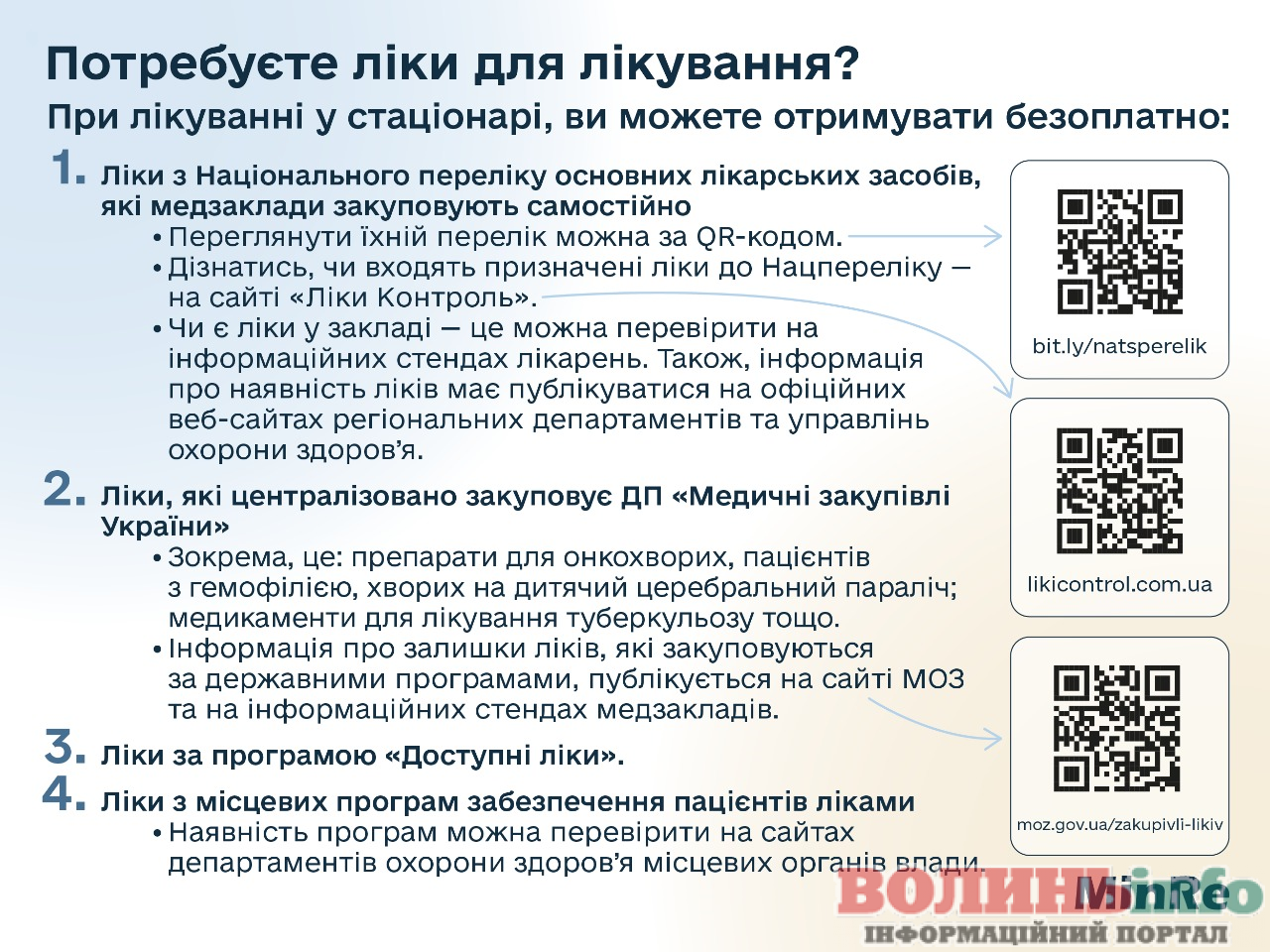 Волиняни можуть безоплатно отримати медпрепарати при лікуванні у стаціонарі та амбулаторно