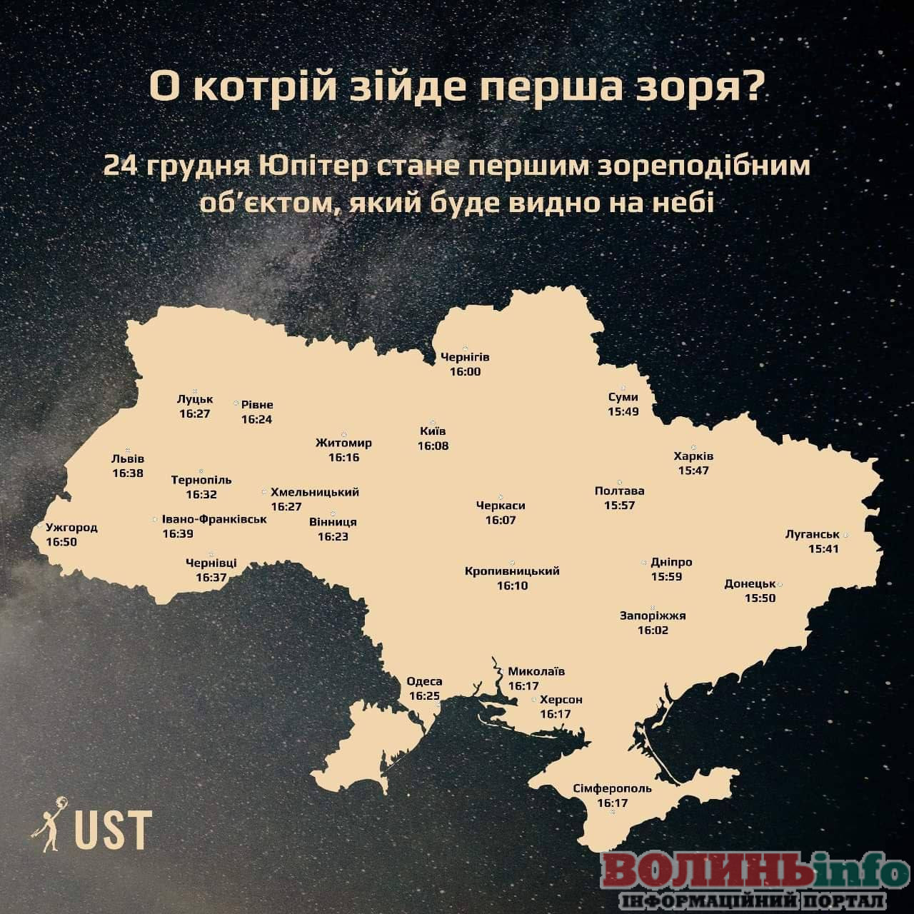 Волиняни зможуть спостерігати коли зійде перша зоря на Святвечір