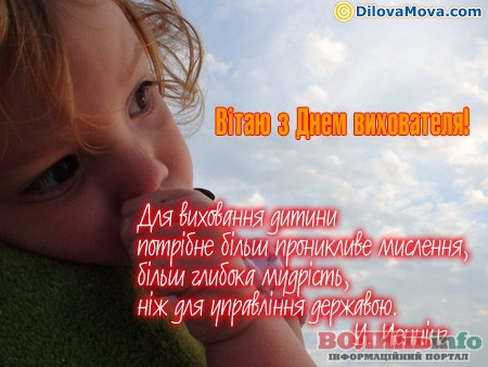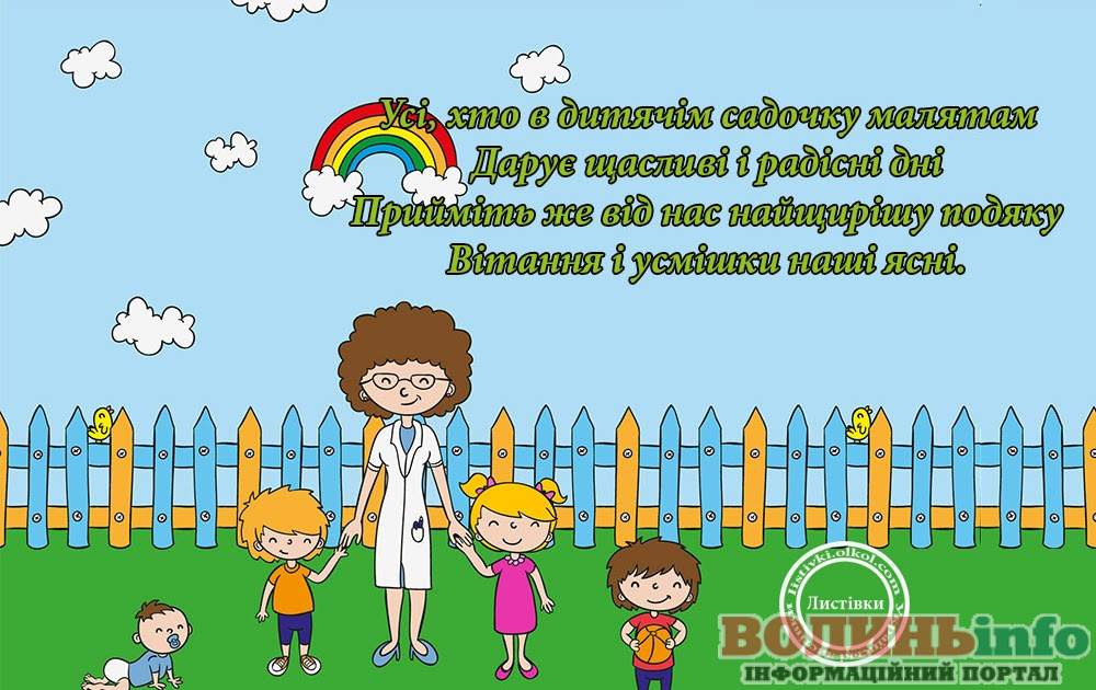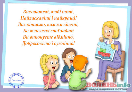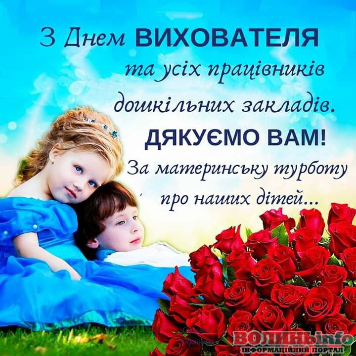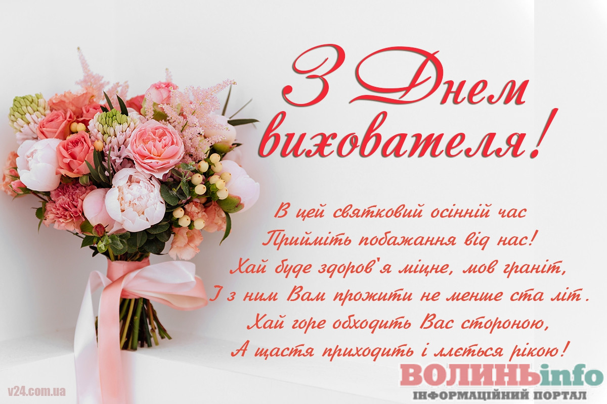 Вітаємо чудових жінок з величезними, добрими серцями. Нехай в житті вам повернеться вся та турбота, ласка і терпіння, які ви даруєте свої маленьким вихованцям. Нехай тепло ваших рук ніколи не забувається цими маленькими крихітками. Бажаємо, щоб вся та любов, яку ви вкладаєте у виховний процес, була винагороджена відповідними почуттями і великою вдячністю. З Днем вихователя!