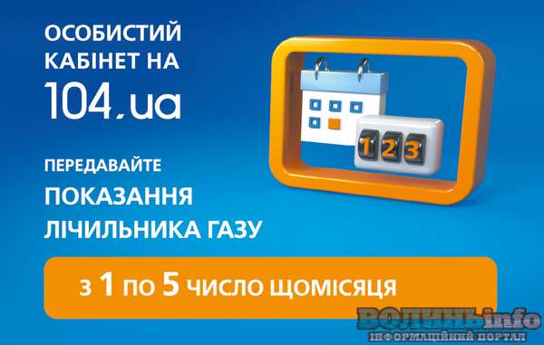- Зафіксувати показання через Особистий кабінет на сайті 104.ua . Для реєстрації кабінету необхідно вказати номер особового рахунку і суму останнього платежу. Детальну інструкцію як зареєструватися в Особистому кабінеті, читайте на сайті (104.ua ) або увійти до кабінету, якщо споживач вже зареєстрований;