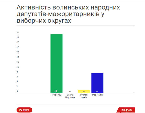 За результатами аналізу ОПОРИ загалом народні депутати України Ігор Гузь (ВО № 19), Сергій Мартиняк (ВО № 20),Степан Івахів (ВО № 21) та Ігор Лапін (ВО № 22) за моніторинговий період здійснили 33 візити у свої виборчі округи з метою проведення зустрічей з виборцями, участі у робочих нарадах з представниками органів державної влади та органів місцевого самоврядування, участі у роботі сесій місцевих рад, проведення особистих прийомів громадян, участі у прес-конференціях чи телевізійних ефірах на місцевих телеканалах, а також проведення зустрічей з виборцями свого округу за межами округу.