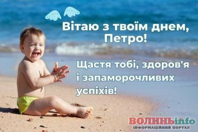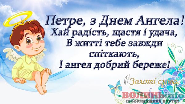Вітаю зі святом, Петро! Бажаю завжди вірного шляху, надійних друзів і товаришів, легкості і надійності. Нехай завжди буде впевненість у завтрашньому дні, міцна любов у серці і в родині. Достатку, удачі й різноманіття перспектив!