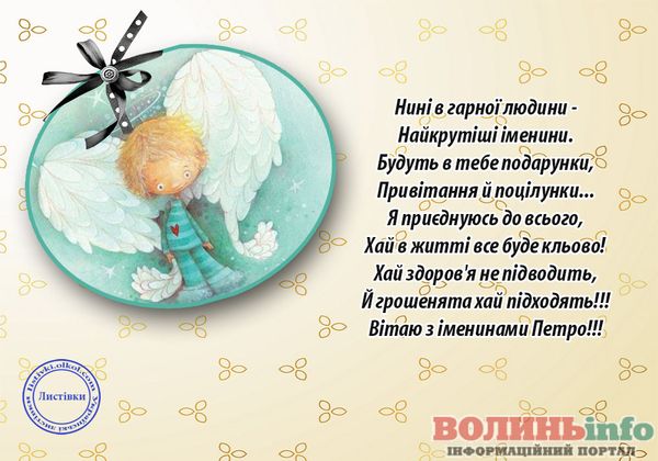 Вітаючи Тебе сьогодні з Днем Ангела Петра,