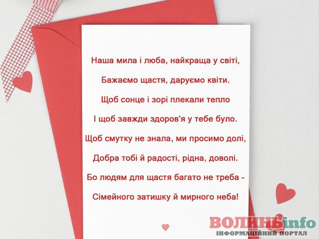 Бажаю тобі, мамо, щоб ти підкорювала чоловічі серця своєю красою ще багато років, і нехай тато трохи ревнує, а ти все одно люби тільки його, щоб щастя твоє було нескінченним.