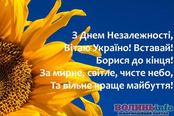 Вітаю з Днем Незалежності! Цей день передає дух патріотизму та гордості за свою націю. Ми пройшли багато випробувань – і це свято доводить нашу єдність, міцність волі і духу, нашу волю й прагнення до свободи. Щастя вам, добра, миру та любові!