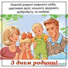 Родина – це найдорожчий і цінний скарб. Тому в всеукраїнський день родини бажаємо, щоб вона була тихою і затишною гаванню. Нехай підтримка найрідніших допомагає впорається з будь-якими труднощами. Нехай всередині сім’ї та в Україні буде мир і любов!