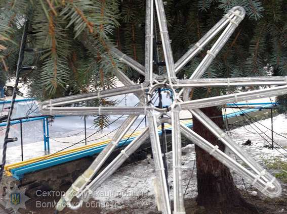 Поліцейські встановили, що в ніч на 22 грудня невідомі особи викрали з новорічної ялинки в центрі Ковеля гірлянду – світлову конструкцію у вигляді зірки. Зловмисники перерізали електричний дріт. Новорічна світлова гірлянда перебуває на балансі Ковельської міської ради. Сума збитків становить 1,6 тис. грн. Поліцейські проводять заходи, спрямовані на встановлення осіб, причетних до скоєння крадіжки.
