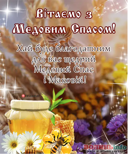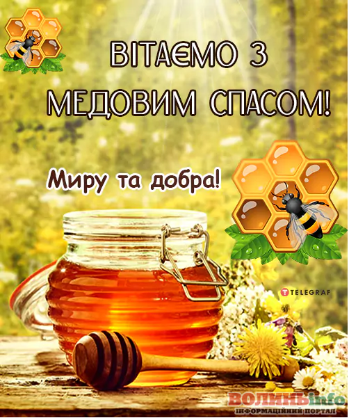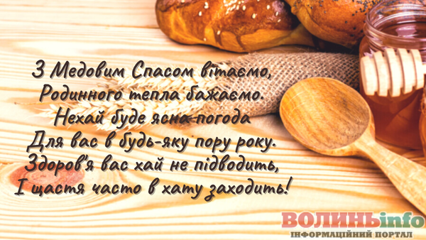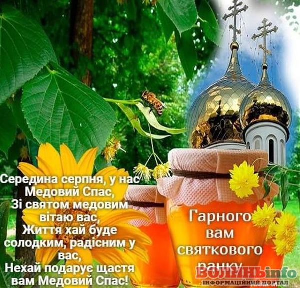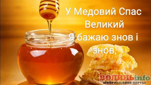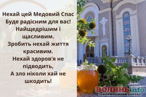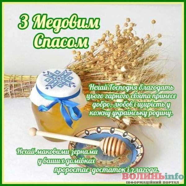 Вітаю із чудовим православним святом – Медовим Спасом! Нехай життя буде солодким, як мед, а сім’я буде злагодженою і дружньою, наче бджоли у вулику. Нехай Спаситель допоможе подолати труднощі на шляху до щасливого та радісного життя. Нехай Ви та ваша сім’я будете під покровом Господа та Богородиці!