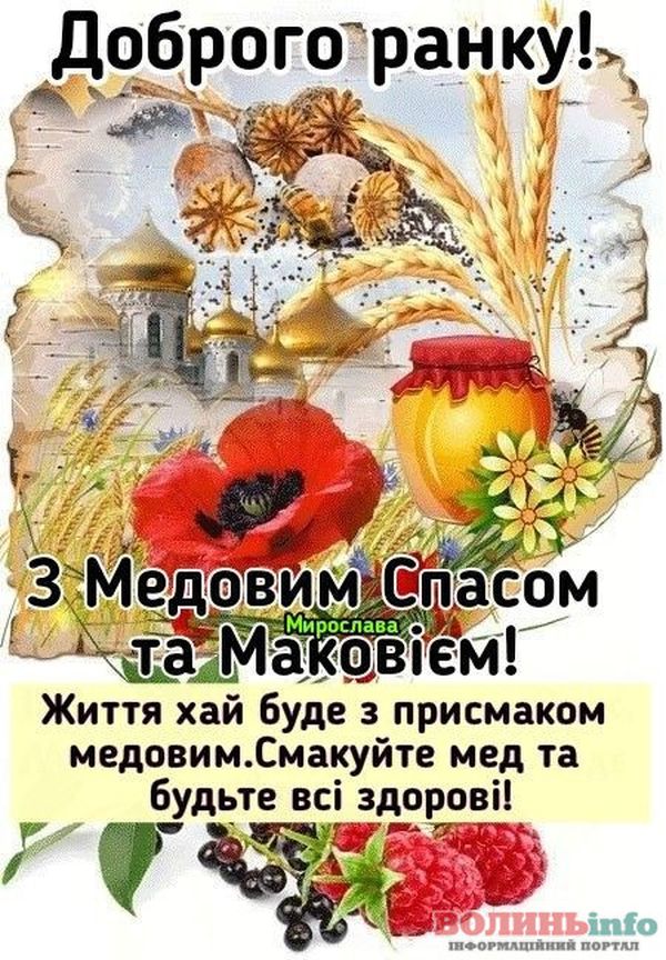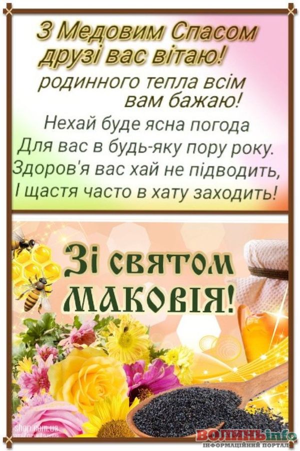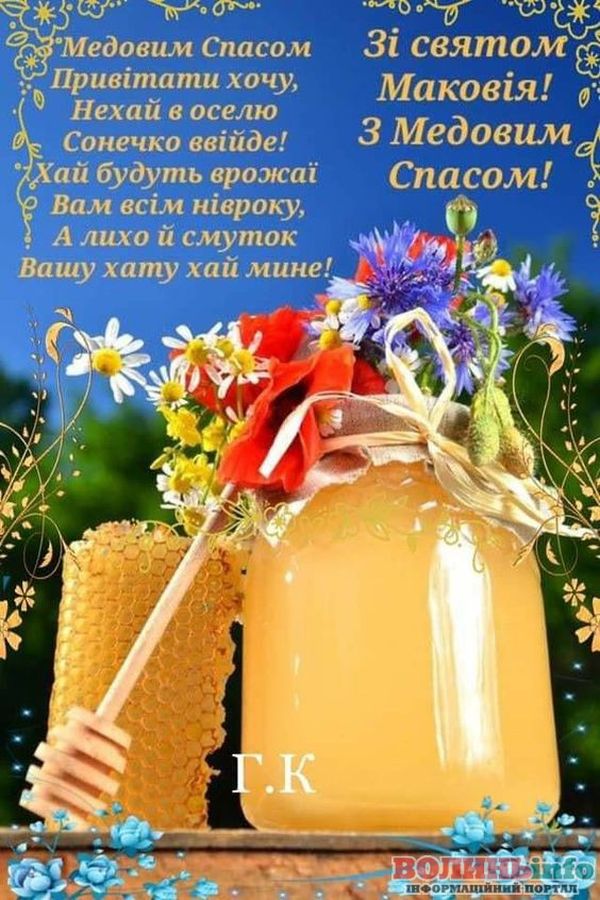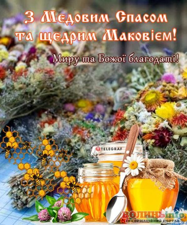 Привітайте своїх близьких та друзів із Медовим Спасом (Маковієм) чудовими словами, листівками та вітальними картинками.