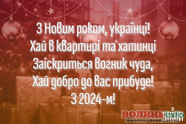 З прийдешнім Новим роком 2024! Нехай Новий рік принесе в дім все найкраще: любов, радість, здоров’я і достаток. Нехай Новий рік буде насичений приємними подіями та емоціями, а близькі та рідні будуть поруч.