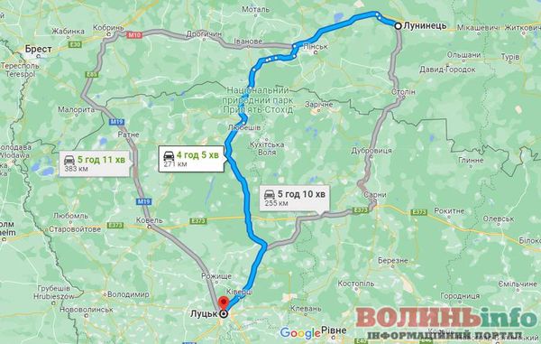 Якщо подивитися Google Карти, відстань між обласним центром Волині та Лунинцем становить трохи більше ніж 200 кілометрів.