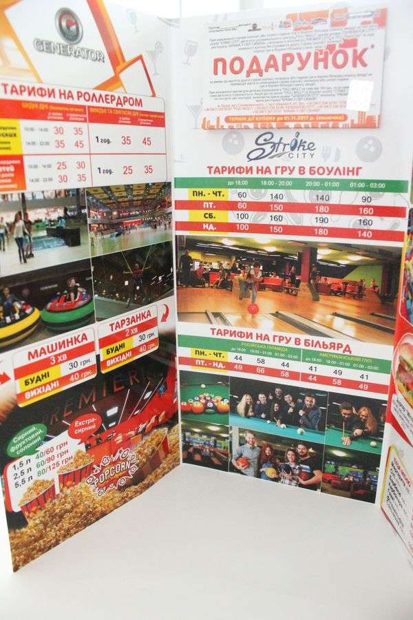 Зокрема пропонується відпочити й у «StrikeCity»: боулінг, більярд, караоке, смачні страви та напої і все це за вигідною пропозицією. Гості боулінг-клубу можуть пограти замість однієї години – дві, або скуштувати удвічі більше оригінальних смаколиків в кафе у «StrikeCity».