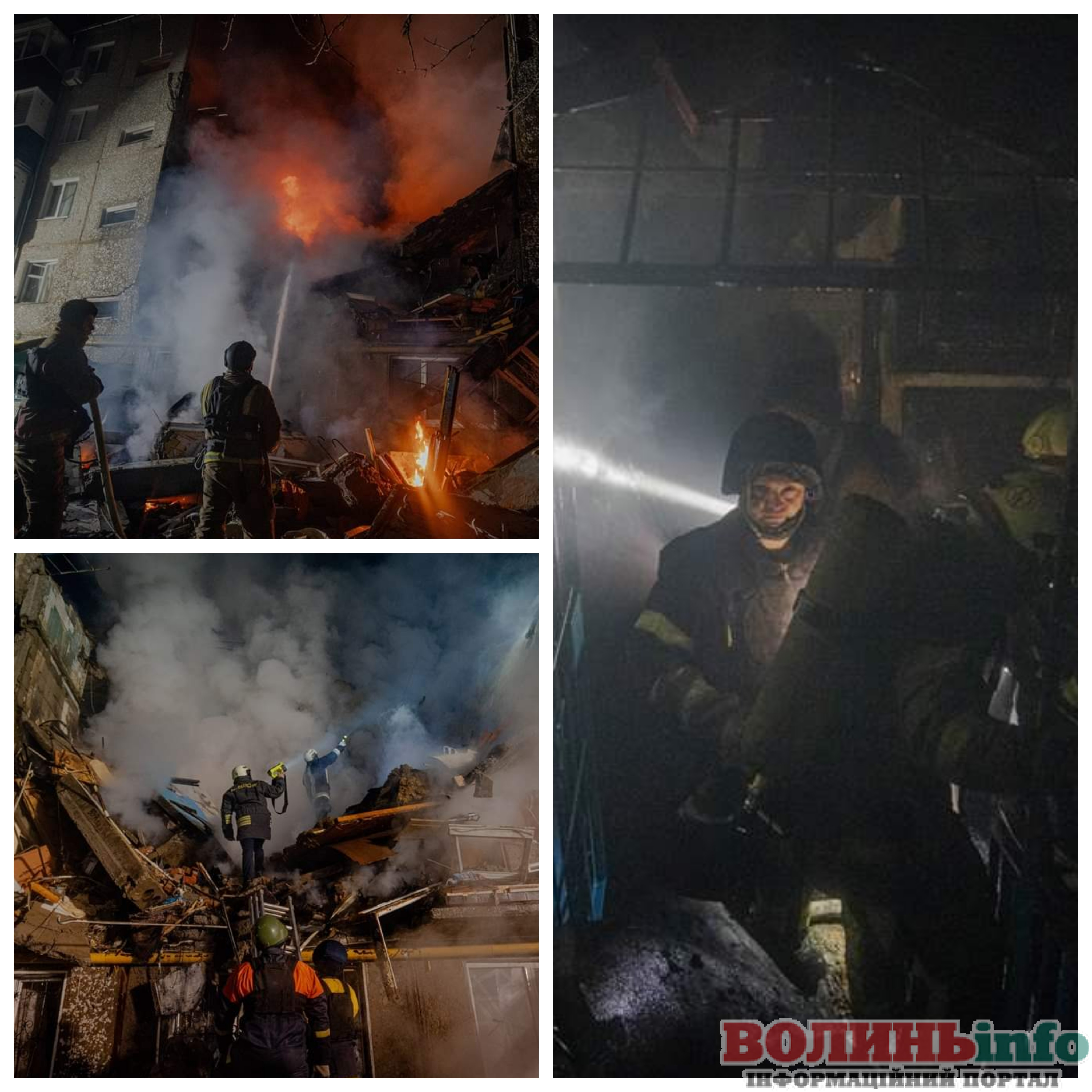 Вночі окупанти завдали удару по п’ятиповерхівці. Близько 15 квартир знищено, гасіння пожежі триває. Рятувальники врятували 10 людей.