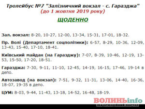 З 12 липня 2019 року на маршруті №7 змінено розклад руху тролейбуса, – повідомили на сайті Луцького підприємства електротранспорту.